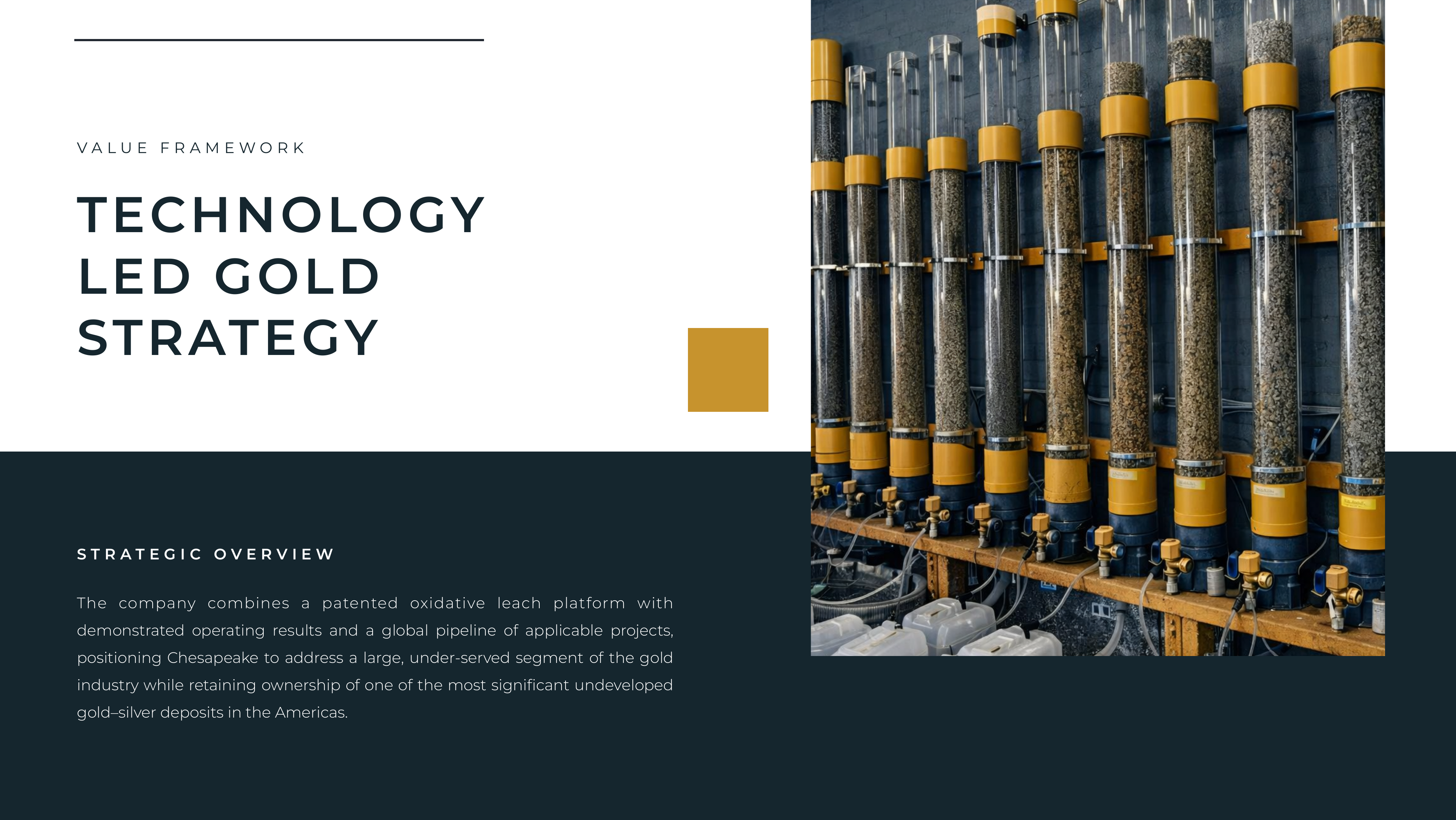 We framed Chesapeake as a technology-led mining company — shifting the narrative from resource limitation to processing capability, and emphasizing scalability, repeatability, and applicability across global refractory systems.