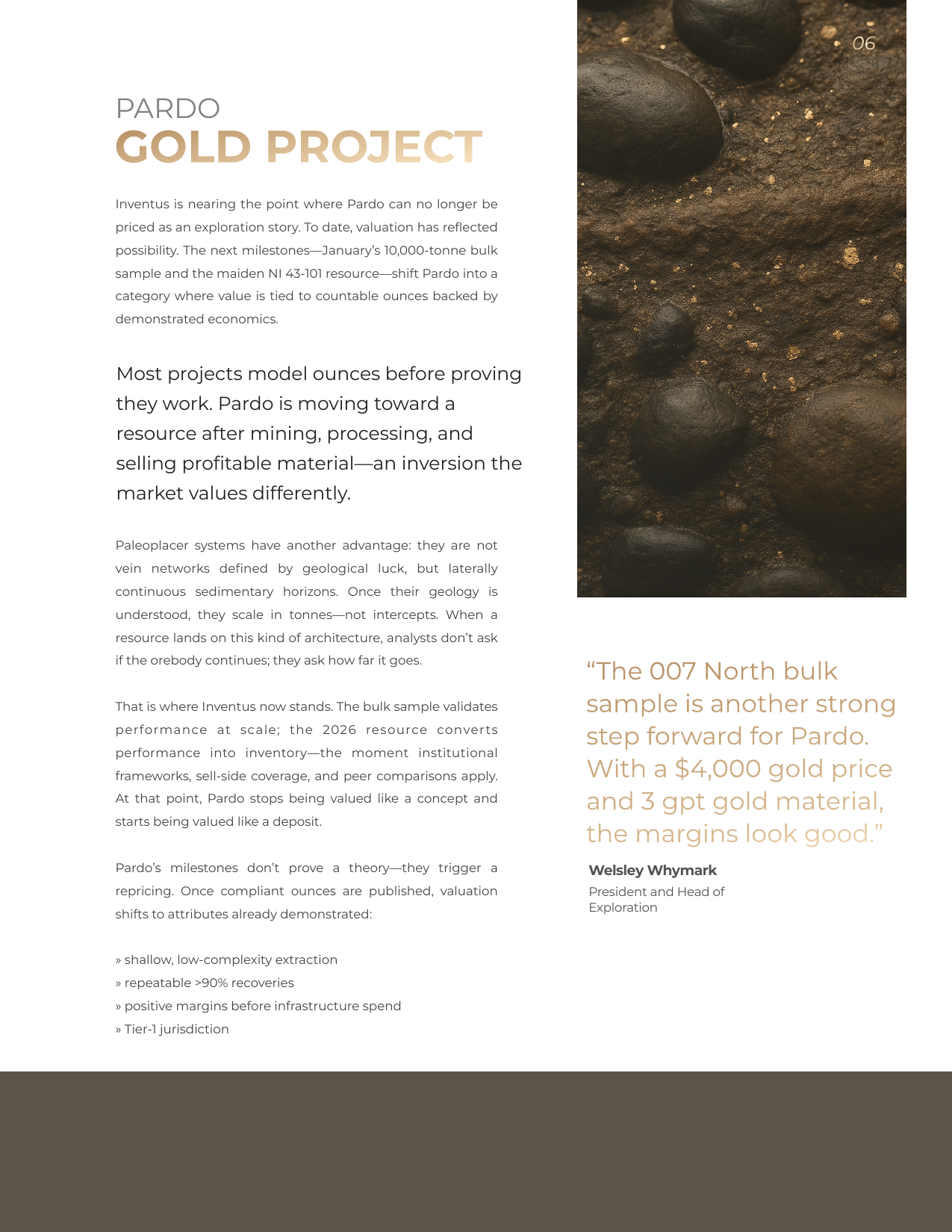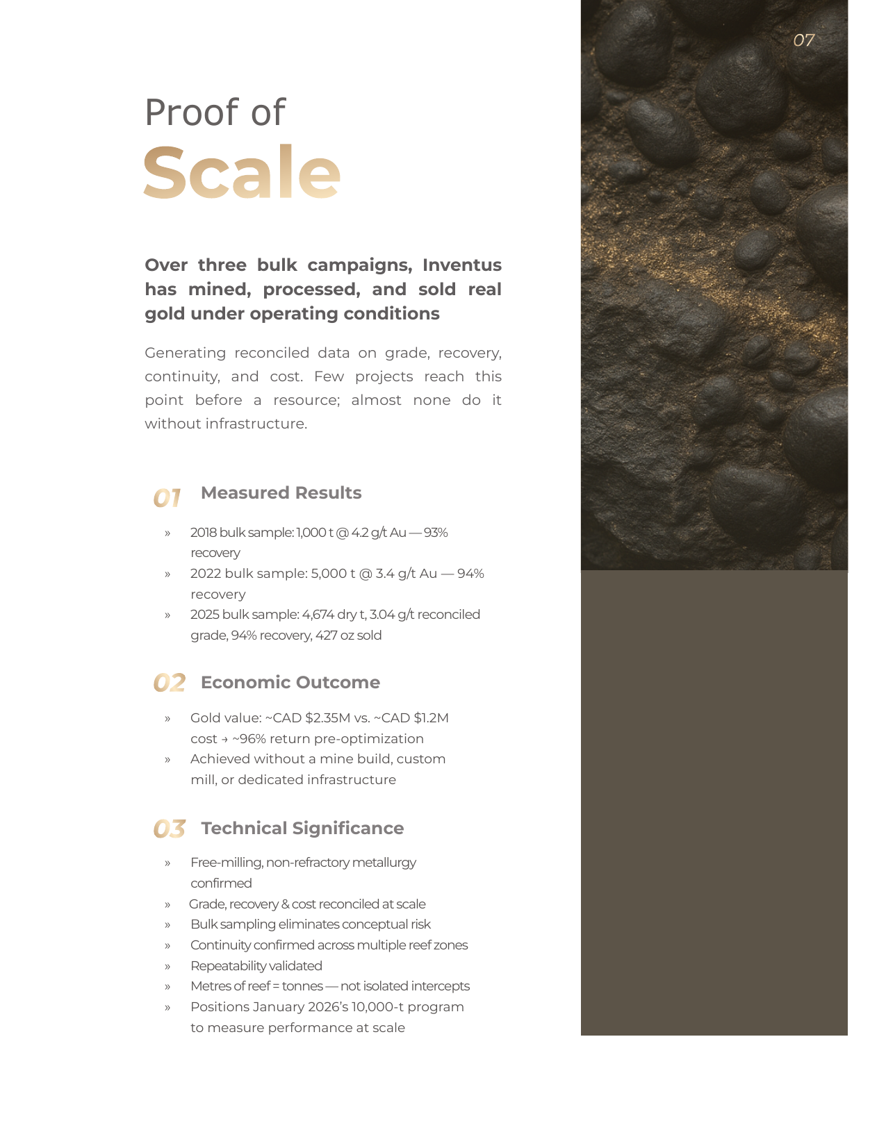 We positioned Inventus as a disciplined exploration story focused on quality over scale — emphasizing high-grade potential, geological continuity, and methodical advancement within a proven jurisdiction. The narrative centers on systematic derisking rather than speculative expansion.