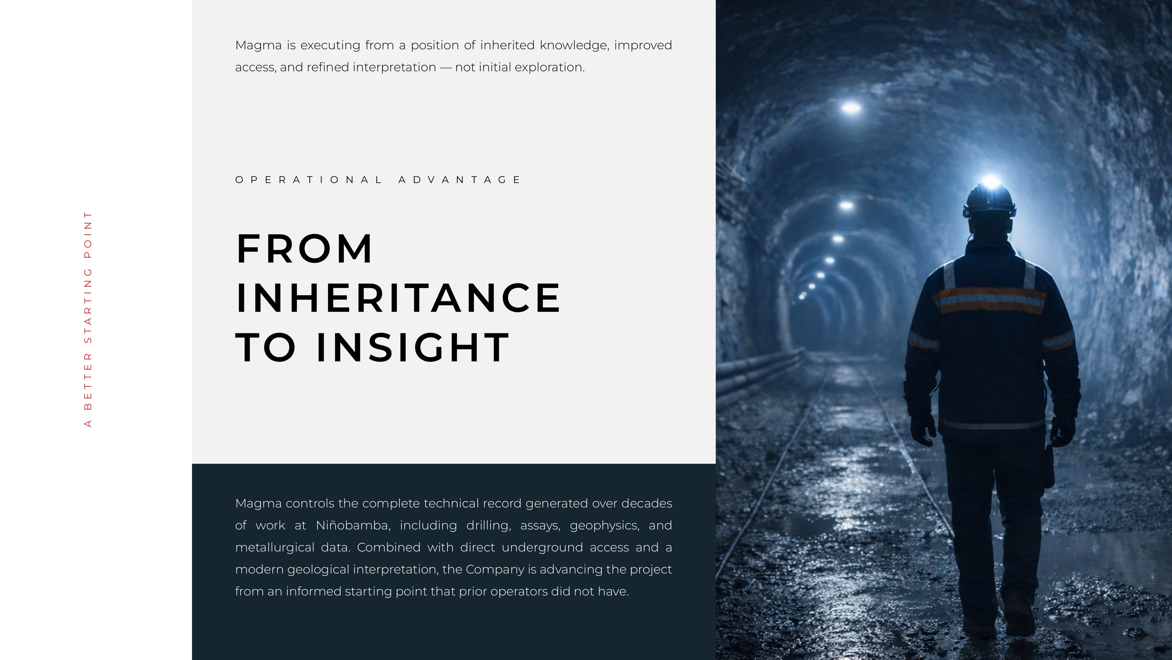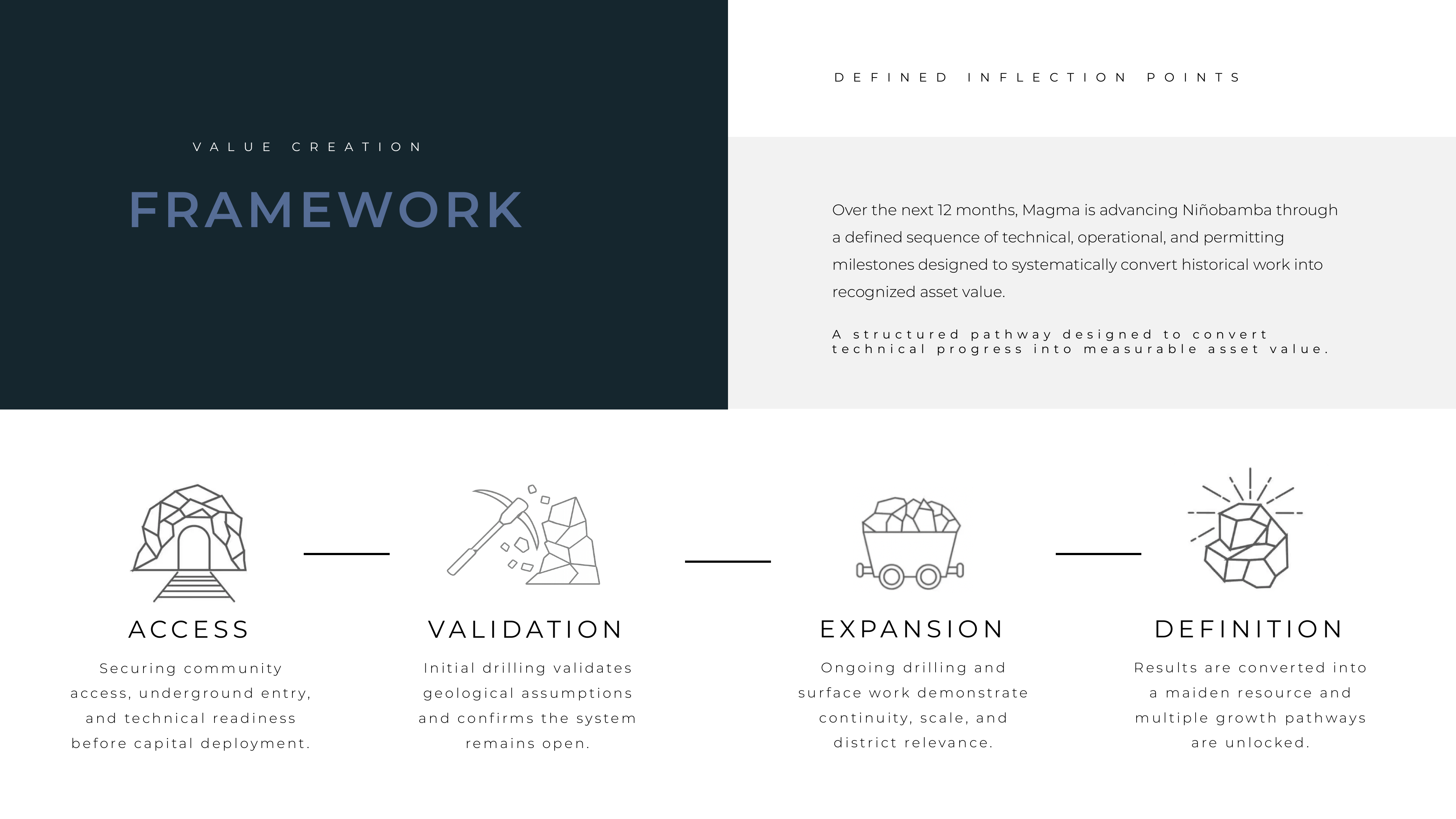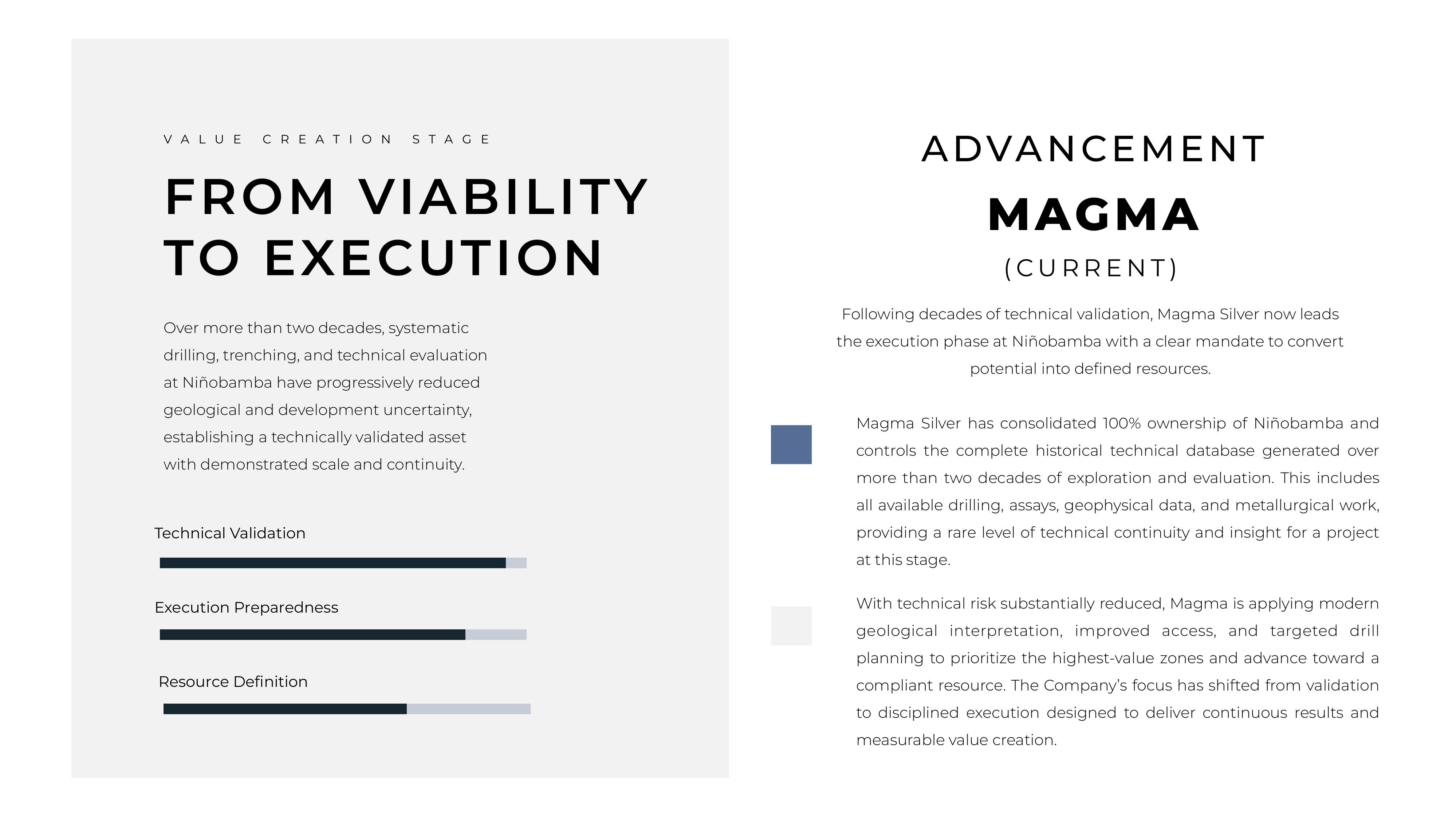 We positioned Magma Silver as a transition-stage asset — emphasizing systematic reinterpretation, disciplined planning, and progression toward definition rather than early-stage exploration risk.